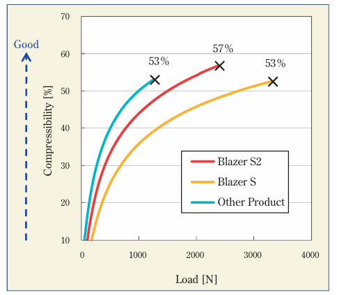FFKM oring capability comparison (Result of compression fracture test at 300℃)