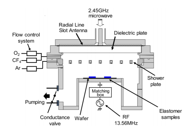 The tested materials were FKM and FFKM. FKM was designed for and is mostly adopted in vacuum equipment because of its resistance to oils, heat, and chemicals. However, with the introduction of corrosive gas plasma in the semiconductor industry, this material has reached its limit of performance. FFKM was then developed adopting a different structural bond. This gives the material improved stability especially against heat and chemicals making FFKM better suited to use in plasma applications.