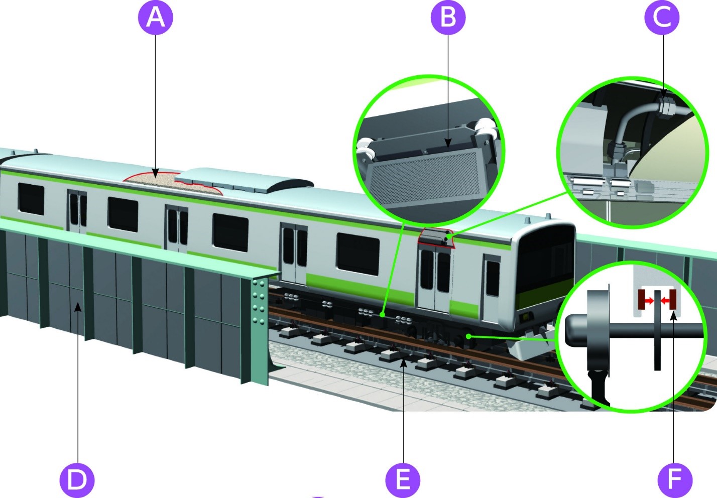 Product solutions supplied by NICHIAS vary from gaskets used in the compressed air lines for door opening systems, to fluoropolymer sliding bearing materials used in the air suspension, to magnetic composite damping materials used to prevent the generation of noise from rail and road bridges, ceramic fibres used in the brake pads of trains to thermal insulation boards installed under the train cars to protect the car's floor against direct transmission of heat generated during acceleration/deceleration.
